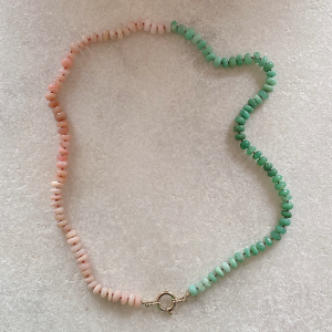 Echte blikvangers! Deze fris groene chalcedoon is gezet in 18 karaat geelgoud en gaat nog meer glanzen door de schitterende diamantjes die erbij gezet zijn. Oorringen zijn ook met de hand gemaakt en van 14 karaat goud.